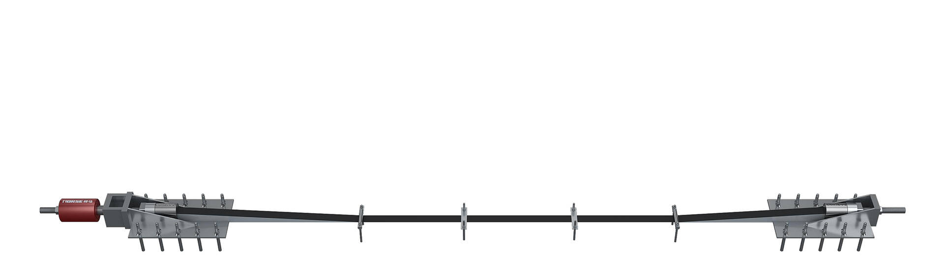 •สกรูจะผ่านกรอบจำกัดเพื่อยึดจุดยึดแบบวงกลม และตำแหน่งการสร้างความตึงจะอยู่ที่เส้นกึ่งกลางของจุดยึดเพื่อหลีกเลี่ยงไม่ให้โมเมนต์ดัดที่เกิดจากความเยื้องศูนย์ของการสร้างความตึงส่งผลกระทบต่อระบบโดยรวม